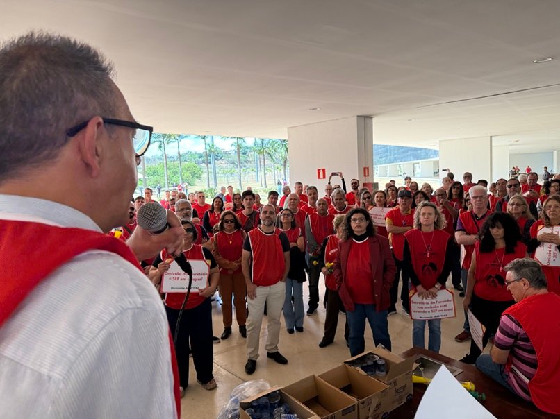 Técnicos e Analistas Fazendários realizaram uma grande manifestação na Cidade Administrativa (CAMG) nesta quarta-feira, 24/09/25.